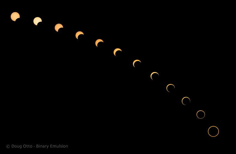For the May 20th annular eclipse, Albuquerque was prime real estate. With our relatively high elevation, clear skies and open spaces, people flocked from all over to see the eclipse right here in the American Southwest. The most difficult portion of the whole endeavor was figuring out what to use as a filter. The sheer number of people interested in seeing this event made actual solar filters pretty hard to come by for someone who waited until the last minute (yes, that’d be me). I ended up with a jumble of glass taped on the end of my 70-200. I even threw caution to the wind and added a 1.4x tele-convertor. A normally firm advocate of not adding anything unnecessary to the light path, I felt a bit like I was running with scissors. The final combination, from the lens out: