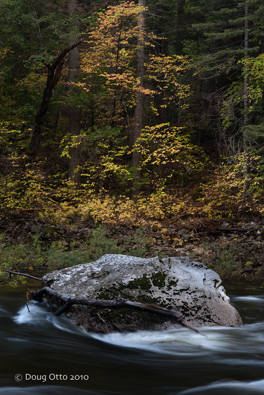 Fall is a season of change. As the deciduous trees prepare for winter, they grace us with a beautiful display of color. It’s almost as if they save up all their energy during spring and summer for their gala performance of the year. The trees in Yosemite vary in their colors but nothing speaks the changing of the seasons, to me, like the brilliant yellows of these trees along the Merced river. For the second consecutive year an early storm brought rain to the park in October. The early rain caused the rivers, streams and falls to spring back to life from their summer sleep. The combination of spring-like water conditions and fall color made for an especially pretty time in the park.